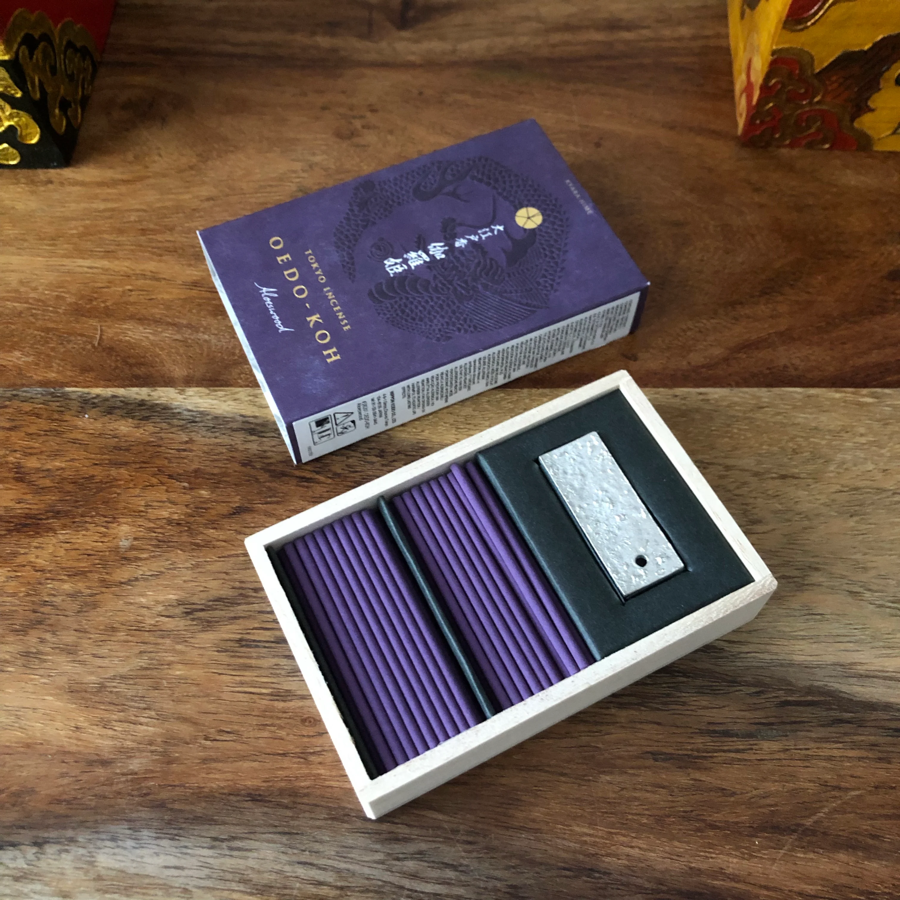 Oedo-Koh Aloeswood Incense by Nippon Kodo is a refined Japanese incense inspired by the art, craftsmanship, and cultural elegance of old Edo, now known as Tokyo. During the Edo period, aloeswood was considered one of the most precious and revered fragrances, reserved for moments of ceremony and quiet refinement. This incense pays tribute to that legacy through the use of high-quality kyara aloeswood, honoured on the box as “Kyara Hime.” The aroma is delicate, smooth, and quietly luxurious, unfolding with warmth and subtle depth rather than intensity. Presented in traditional purple tones, the incense is housed in a paulownia wood box with an outer sleeve, and includes a tin incense holder and an explanatory leaflet. Ideal for meditation, contemplation, or refined daily ritual, this incense reflects the calm sophistication of classical Japanese fragrance culture.