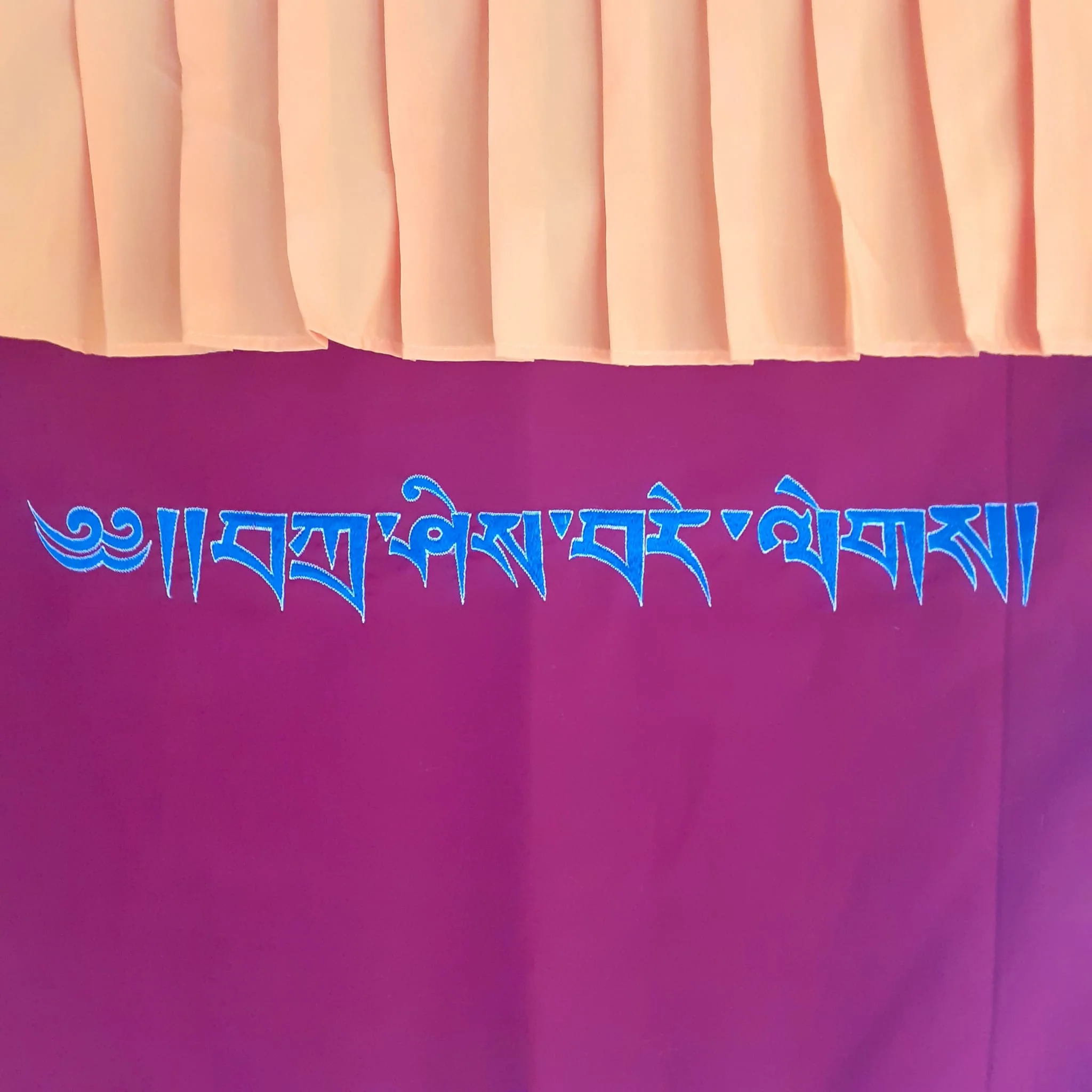 This stunning, beautifully handmade traditional Tibetan door curtain displays a hand embroidered Eight Lucky Mandala at its centre.